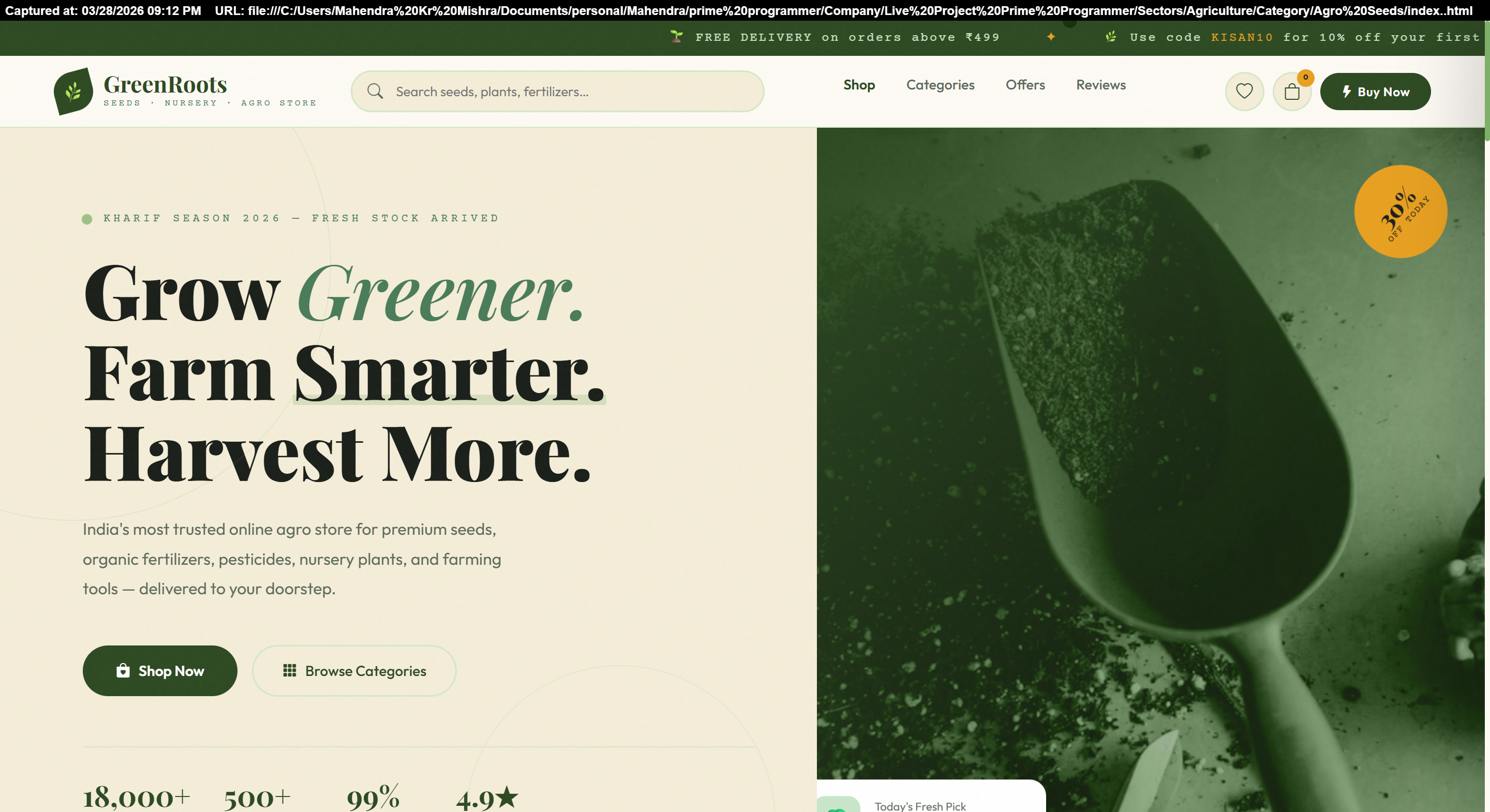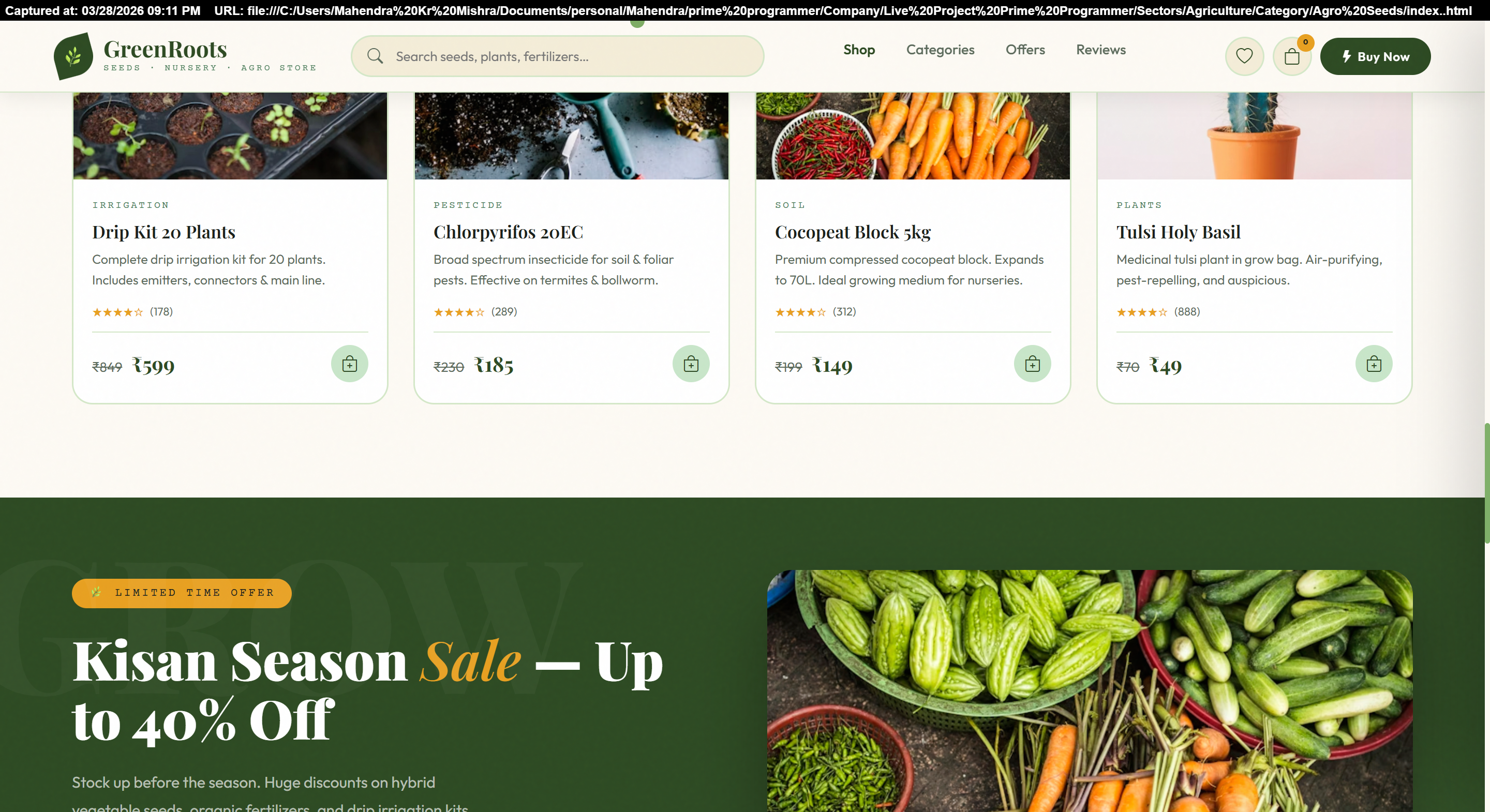 Complete ecommerce solution for selling seeds, plants, and fertilizers online with payment integration.